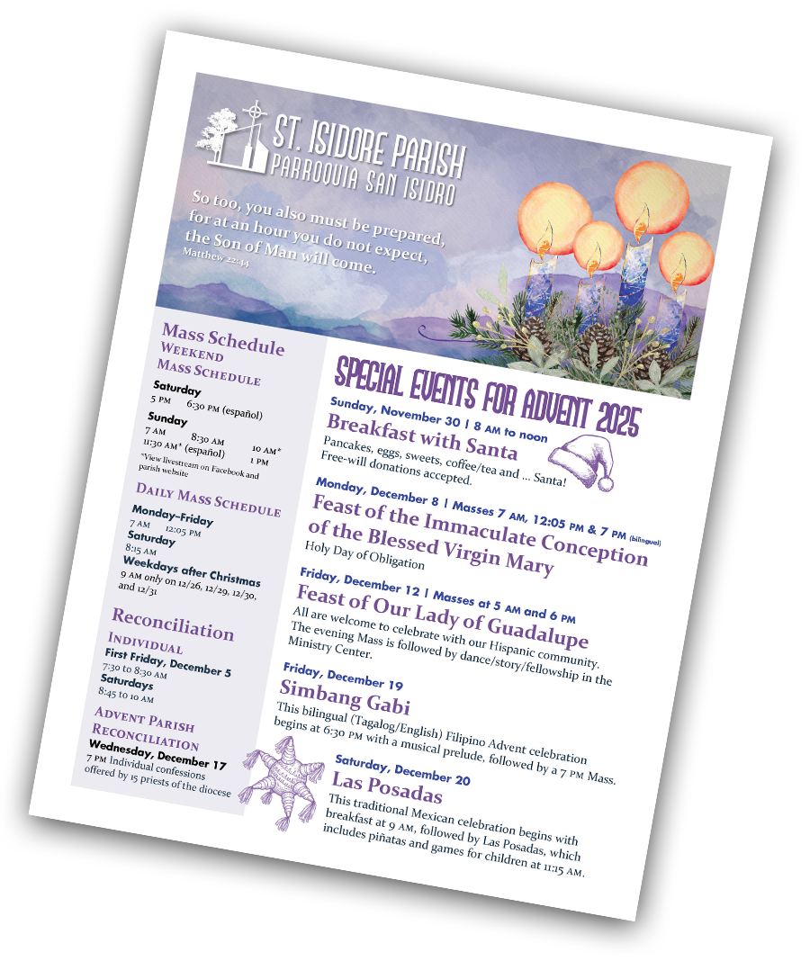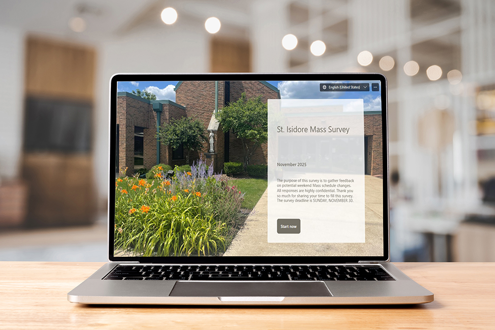 Your opinions are requested! All adult parishioners are invited to take part in an online survey to gather feedback on Mass attendance. Please complete the survey ONCE by Sunday, November 30. Data will be analyzed for Mass schedule changes to be implemented in 2026.